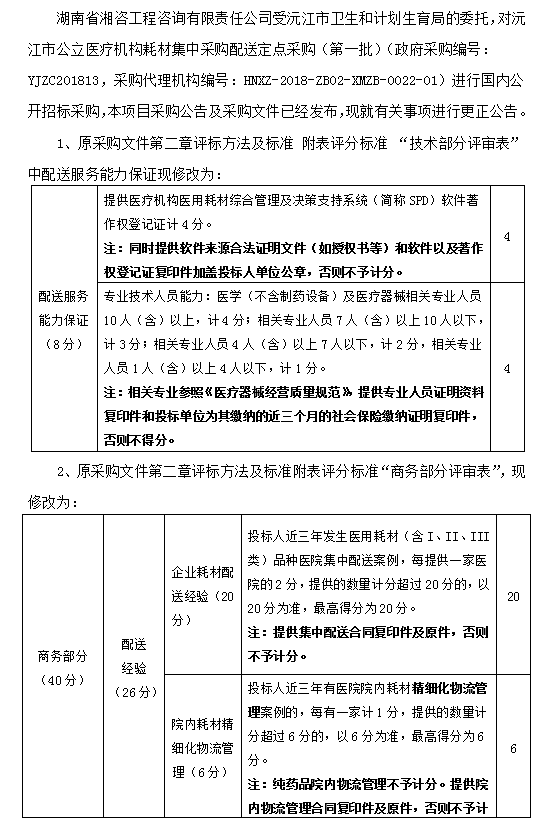 沅江市公立醫(yī)療機構(gòu)耗材集中采購配送定點采購(第一批) 更正公告