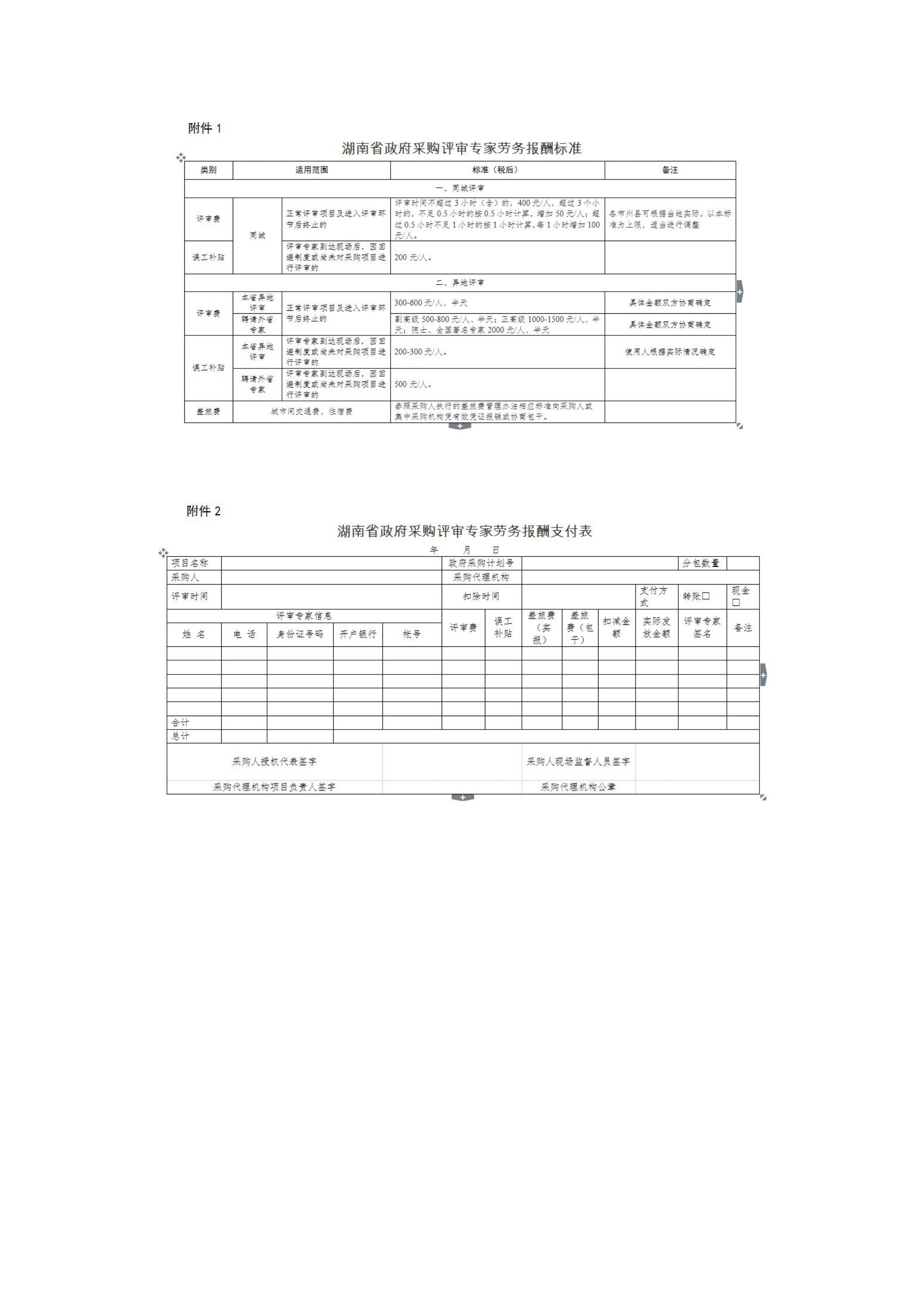 附件:1、湖南省政府采購項目評審/家勞務(wù)報酬標(biāo)準(zhǔn)