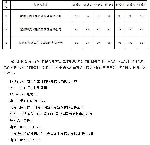 龍山縣里耶古城南游客服務(wù)中心(含拆遷安置區(qū))二期工程監(jiān)理 招標投標信息公示表