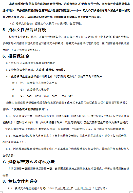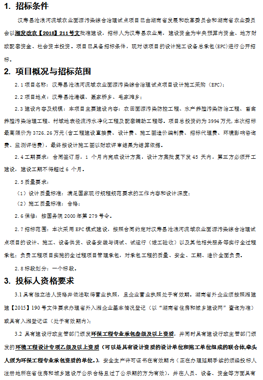 漢壽縣滄浪河流域農(nóng)業(yè)面源污染綜合治理試點項目設(shè)計施工采購 (EPC)總承包招標公告