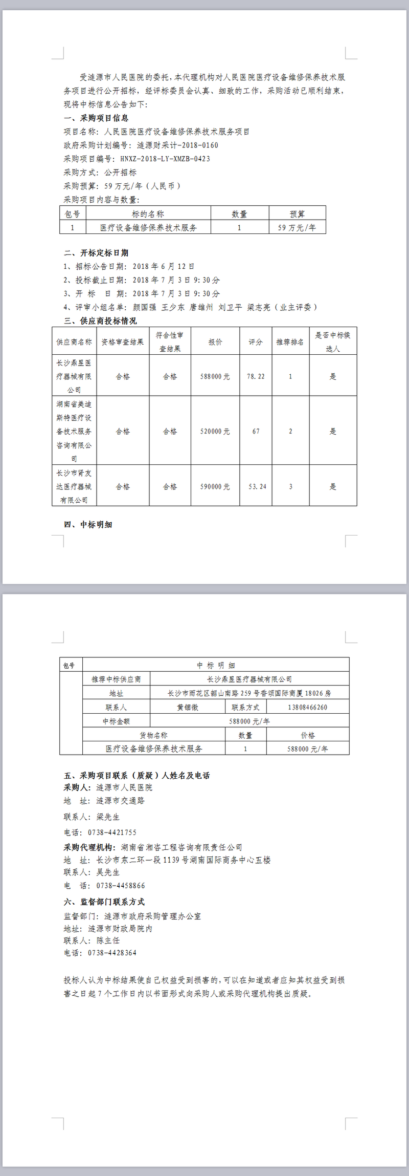 人民醫(yī)院醫(yī)療設(shè)備維修保養(yǎng)技術(shù)服務(wù)項目 中標(biāo)結(jié)果公告