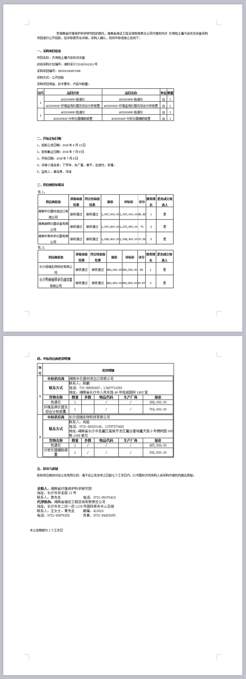 湖南省環(huán)境保護(hù)科學(xué)研究院農(nóng)用地土壤污染狀況詳查公開招標(biāo)中標(biāo)公告