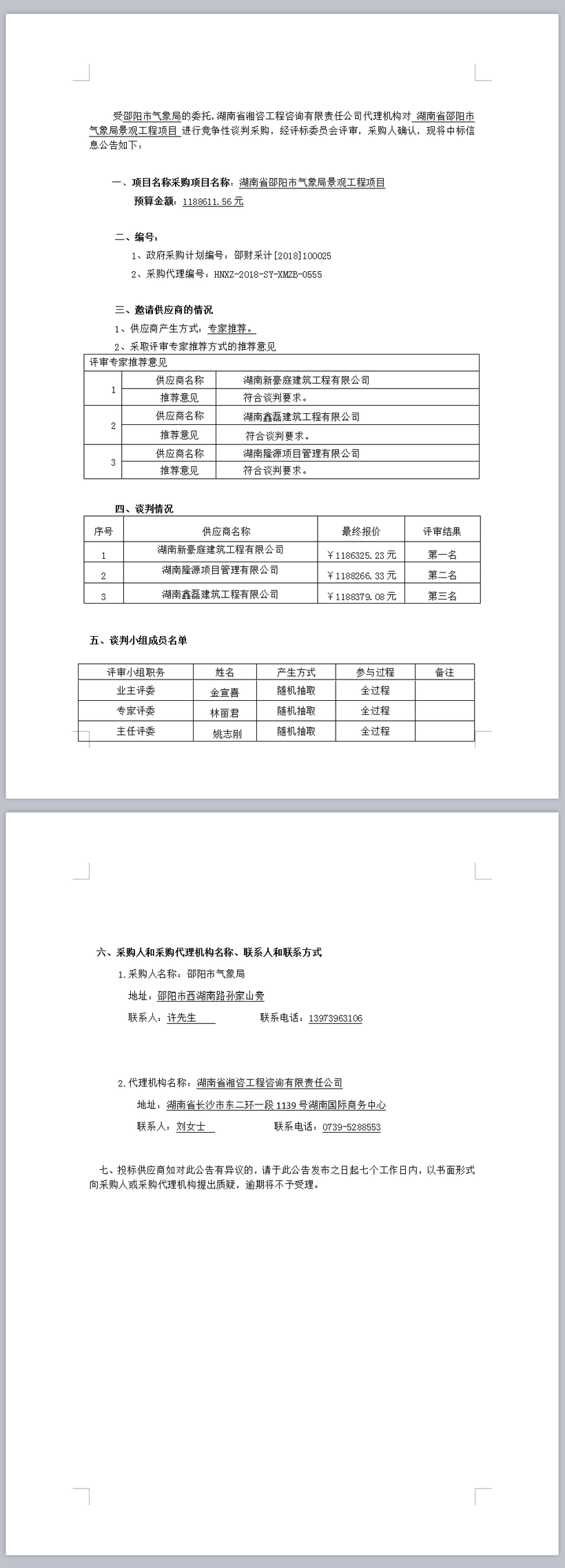 湖南省邵陽市氣象局景觀工程項(xiàng)目競(jìng)爭(zhēng)性談判成交公告