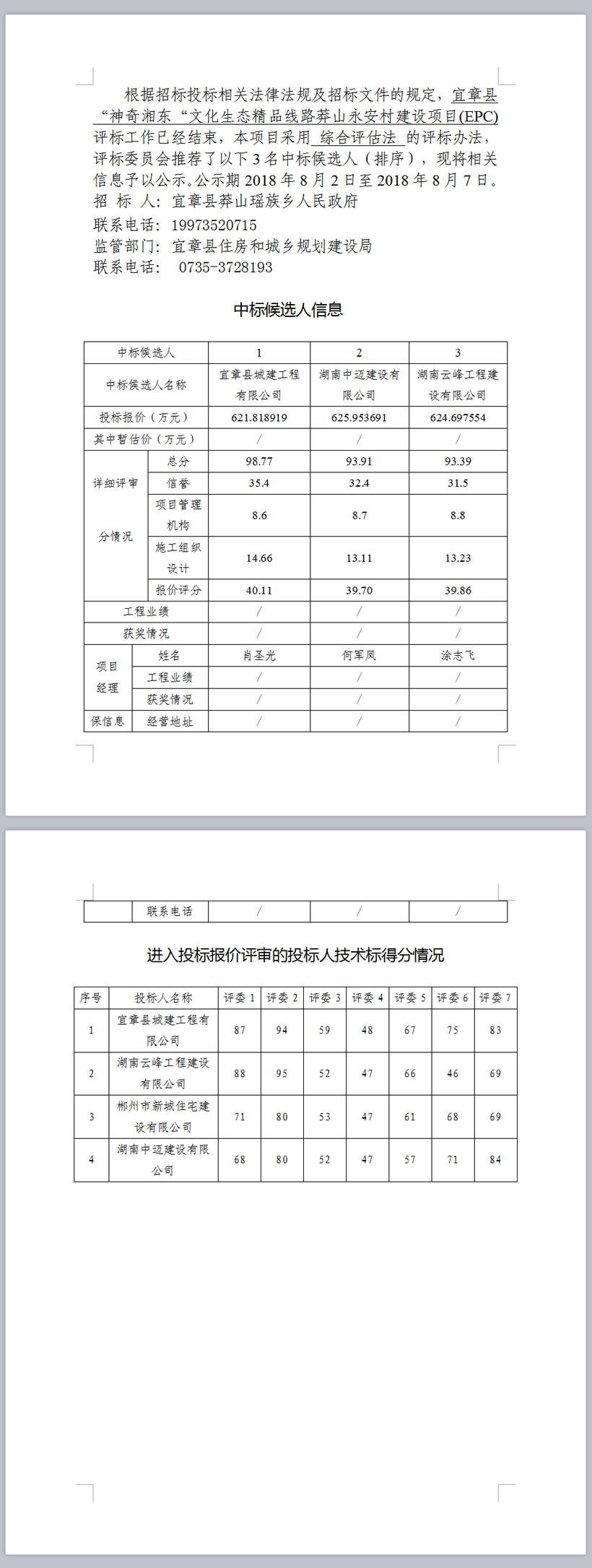 宜章縣“神奇湘東“文化生態(tài)精品線路莽山永安村建設(shè)項(xiàng)目(EPC) 中標(biāo)候選人公示