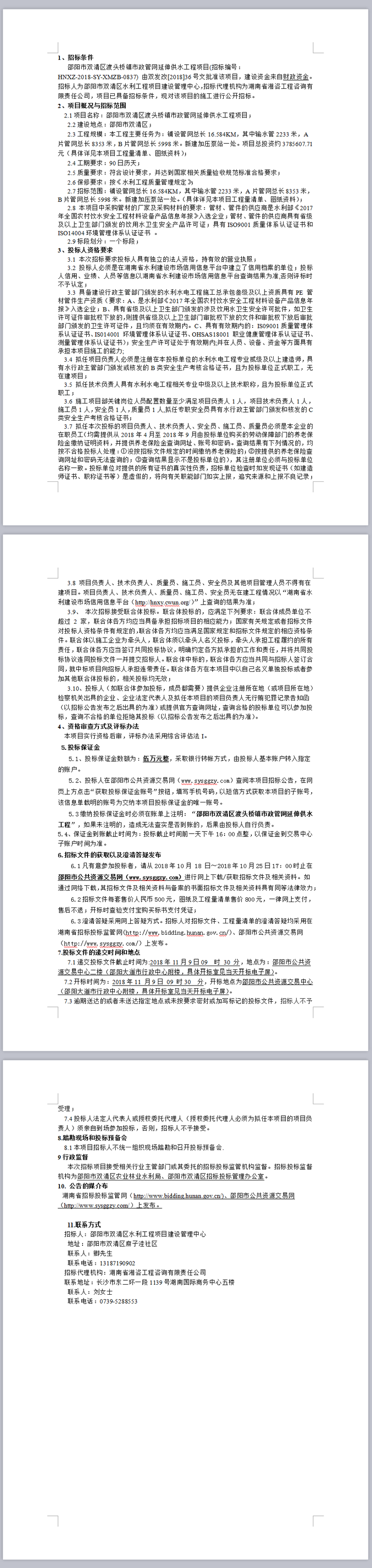 邵陽(yáng)市雙清區(qū)渡頭橋鎮(zhèn)市政管網(wǎng)延伸供水工程項(xiàng)目招標(biāo)公告
