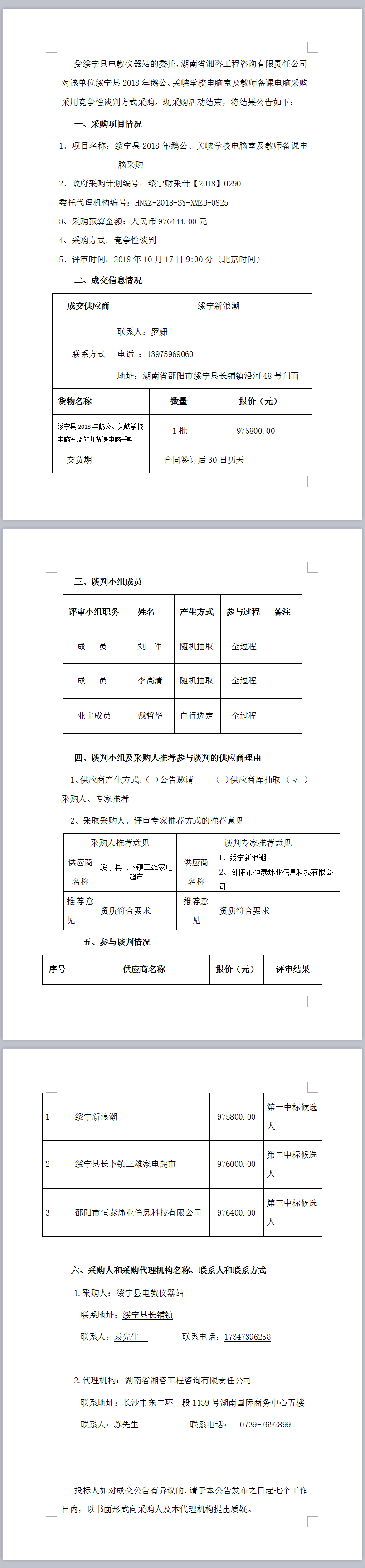 綏寧縣2018年鵝公、關(guān)峽學(xué)校電腦室及教師備課電腦采購談判成交公告