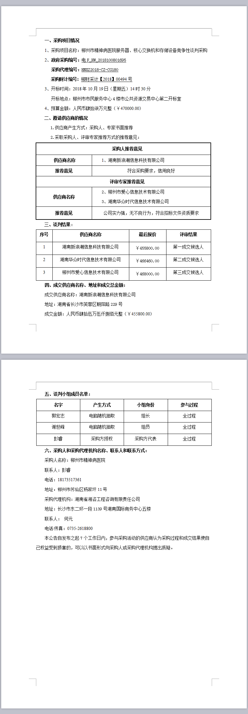 郴州市精神病醫(yī)院服務(wù)器、核心交換機(jī)和存儲(chǔ)設(shè)備競(jìng)爭(zhēng)性談判采購(gòu)成交公告