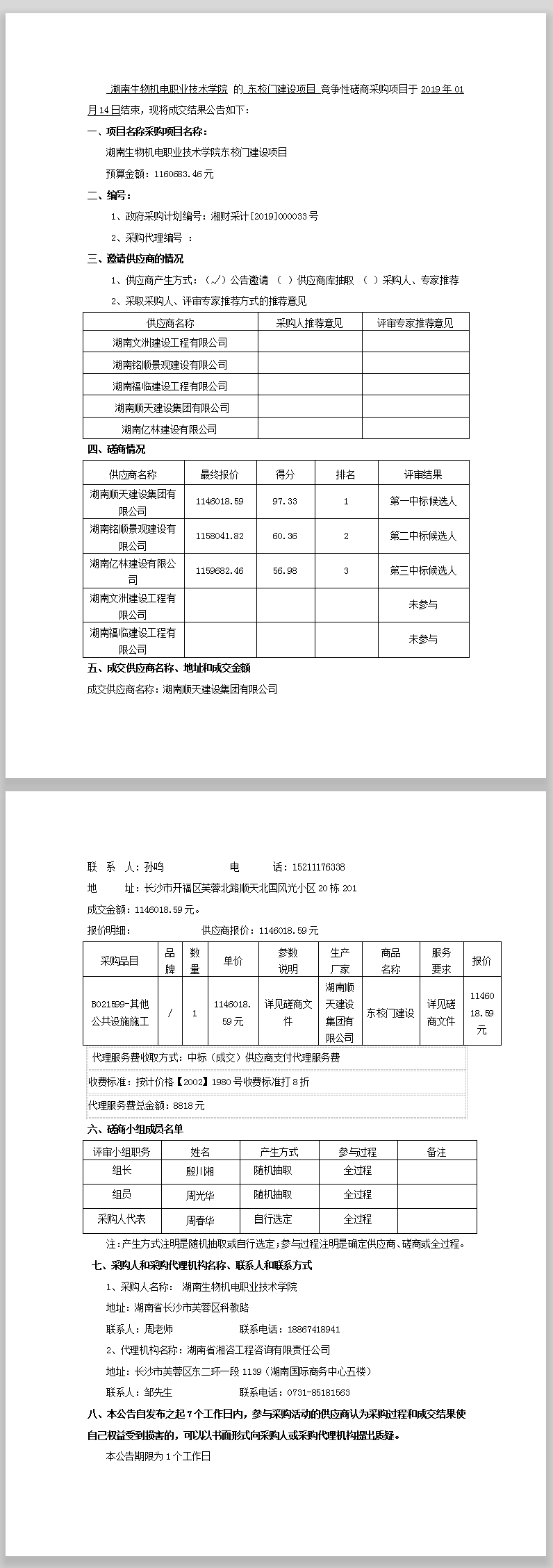 湖南生物機電職業(yè)技術(shù)學院東校門建設(shè)項目競爭性磋商成交公告