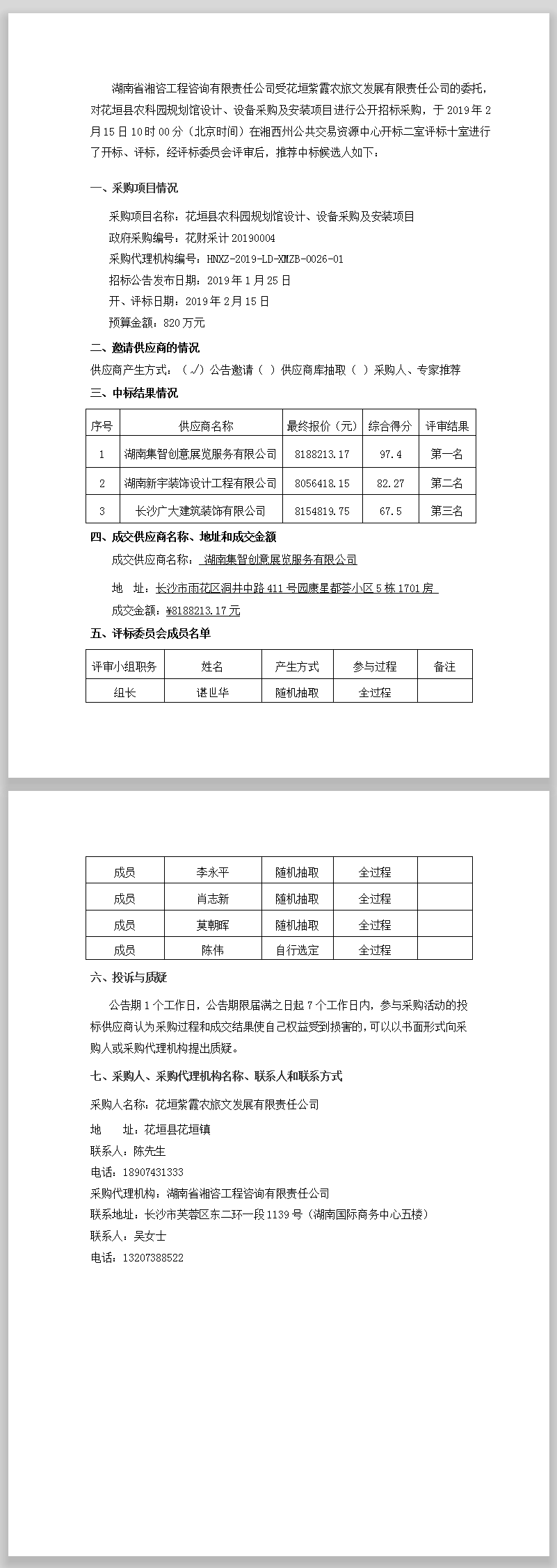 花垣縣農(nóng)科園規(guī)劃館設(shè)計、設(shè)備采購及安裝項目公開招標(biāo)中標(biāo)公告