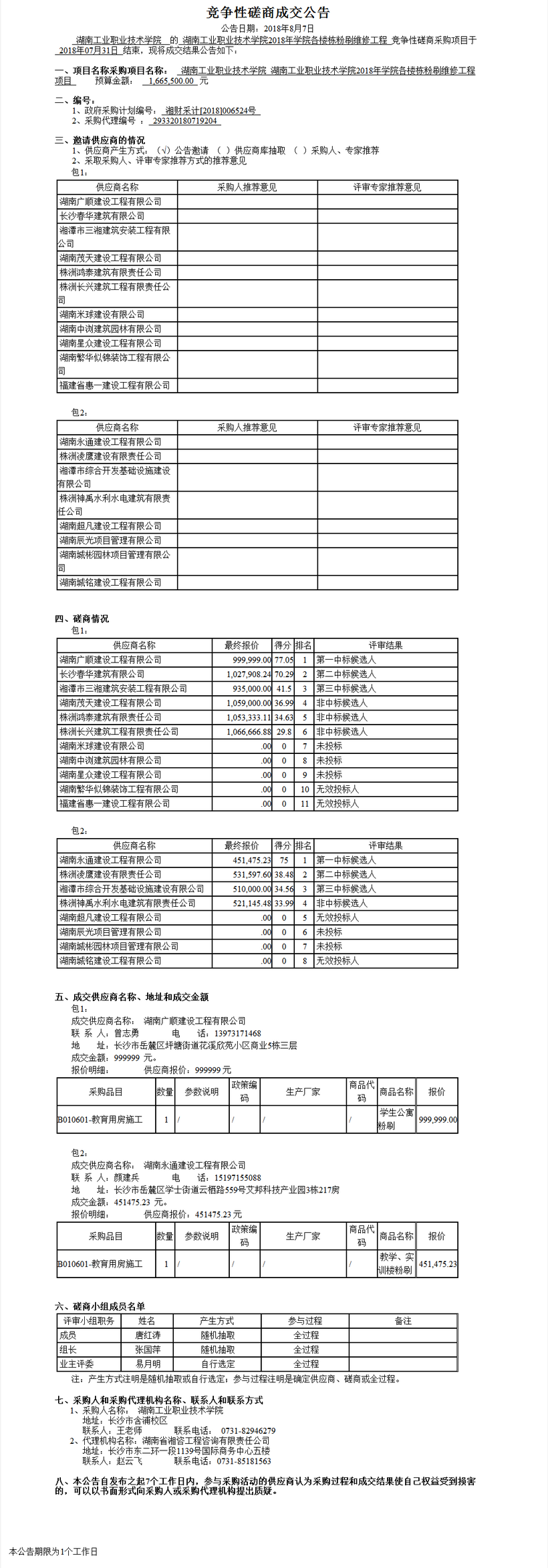 湖南工業(yè)職業(yè)技術學院湖南工業(yè)職業(yè)技術學院2018年學院各樓棟粉刷維修工程項目競爭性磋商成交公告