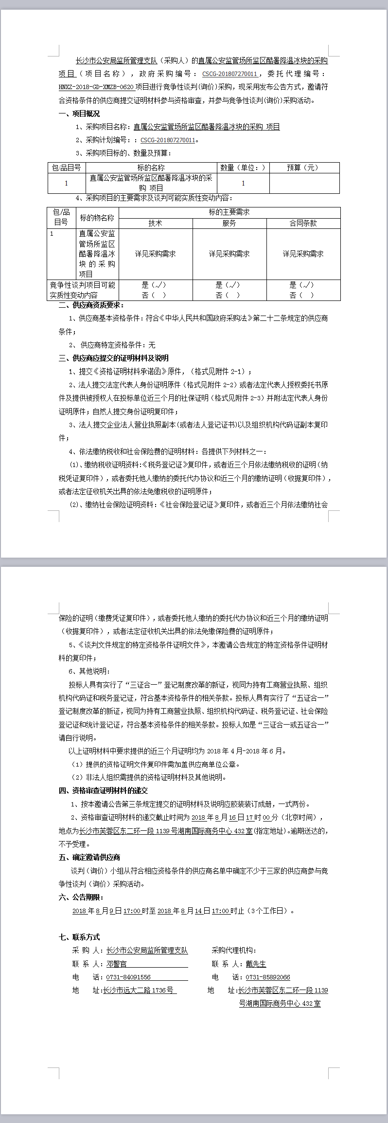 直屬公安監(jiān)管場所監(jiān)區(qū)酷暑降溫冰塊的采購項(xiàng)目競爭性談判邀請(qǐng)公告