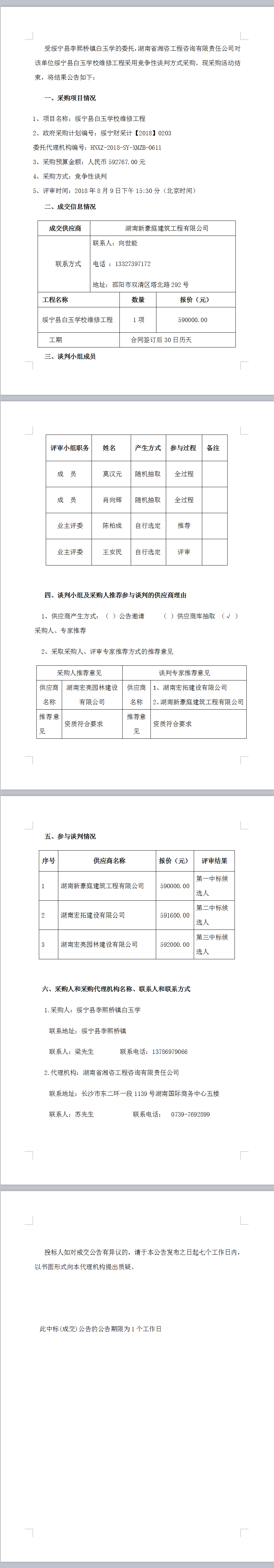 綏寧縣白玉學校維修工程談判成交公告
