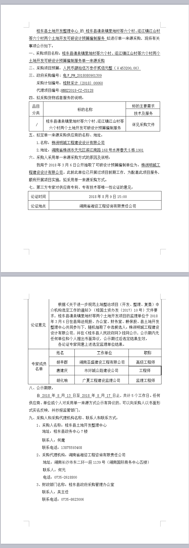 桂東縣清泉鎮(zhèn)里地村等六個(gè)村、漚江鎮(zhèn)江山村等六個(gè)村兩個(gè)土地開(kāi)發(fā)可研設(shè)計(jì)預(yù)算編制服務(wù)單一來(lái)源采購(gòu)公示