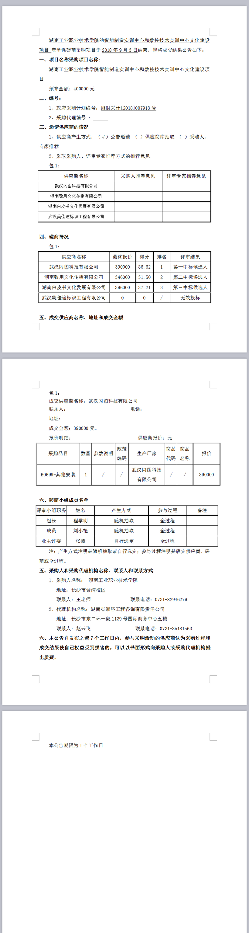 湖南工業(yè)職業(yè)技術(shù)學(xué)院智能制造實(shí)訓(xùn)中心和數(shù)控技術(shù)實(shí)訓(xùn)中心文化建設(shè)項(xiàng)目競爭性磋商成交公告