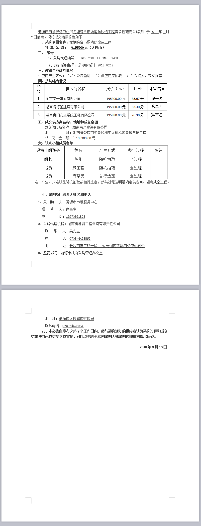 龍?zhí)辆C合市場消防改造工程競爭性磋商成交結(jié)果公告