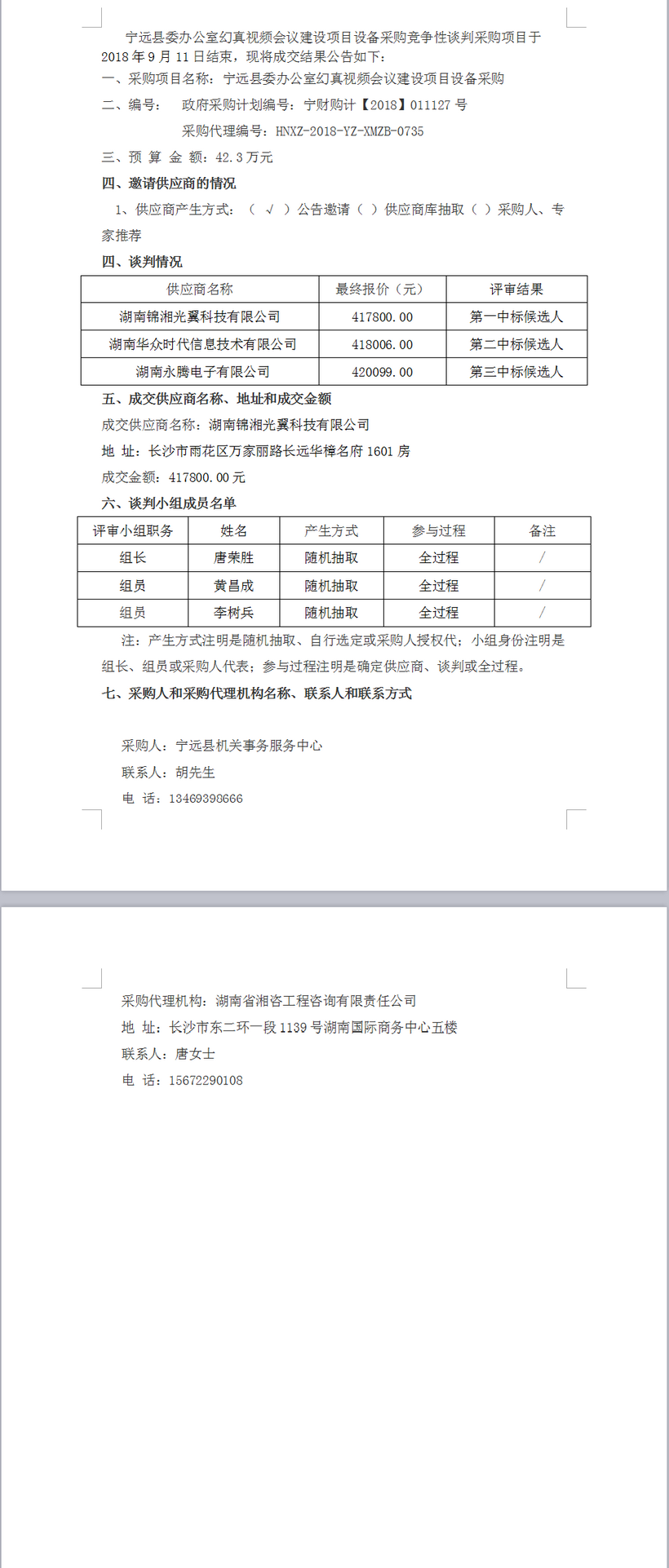 寧遠(yuǎn)縣委辦公室幻真視頻會議建設(shè)項(xiàng)目設(shè)備采購競爭性談判成交公告