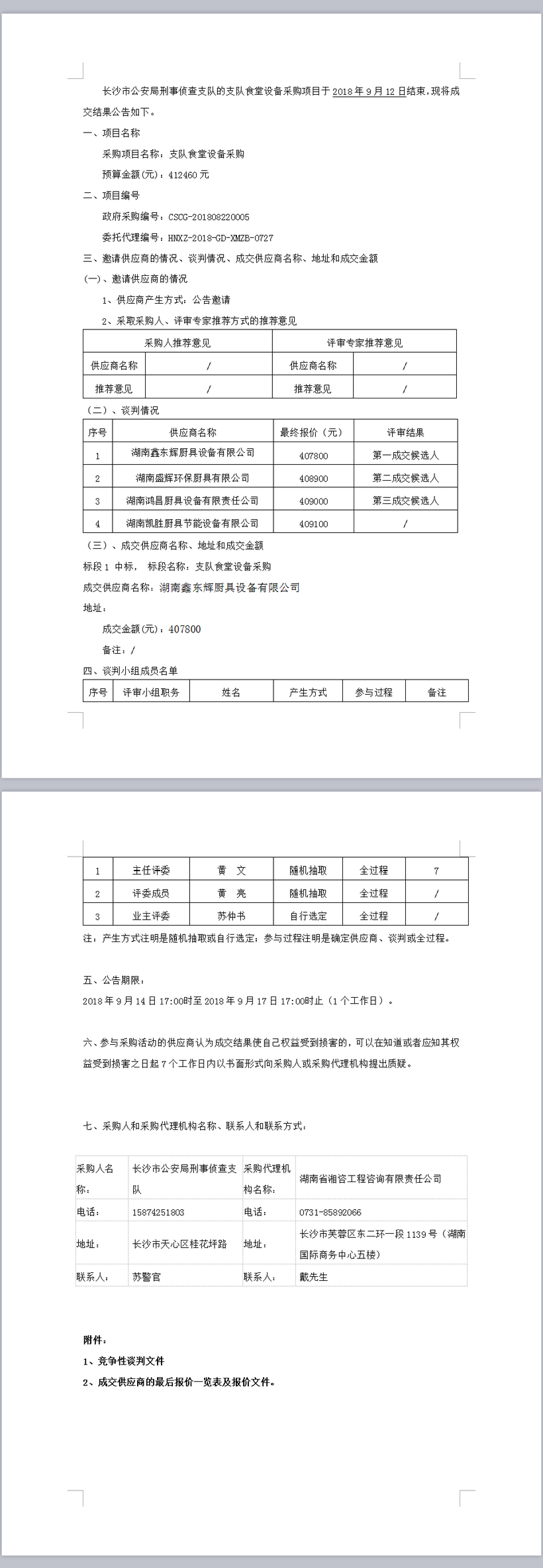 長沙市公安局刑事偵查支隊支隊食堂設(shè)備采購結(jié)果公告