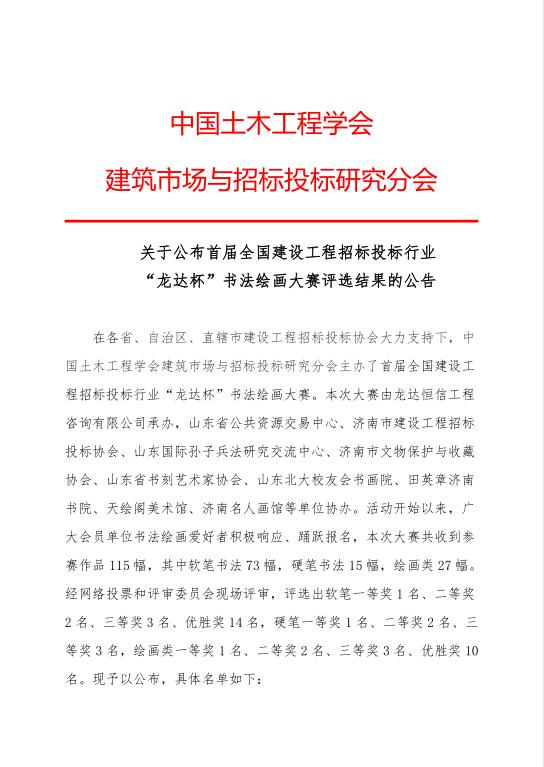 【喜訊】熱烈祝賀我司王佳勇在首屆全國建設(shè)工程招標(biāo)投標(biāo)行業(yè)?“龍達(dá)杯”書法繪畫大賽獲得軟筆類優(yōu)勝獎