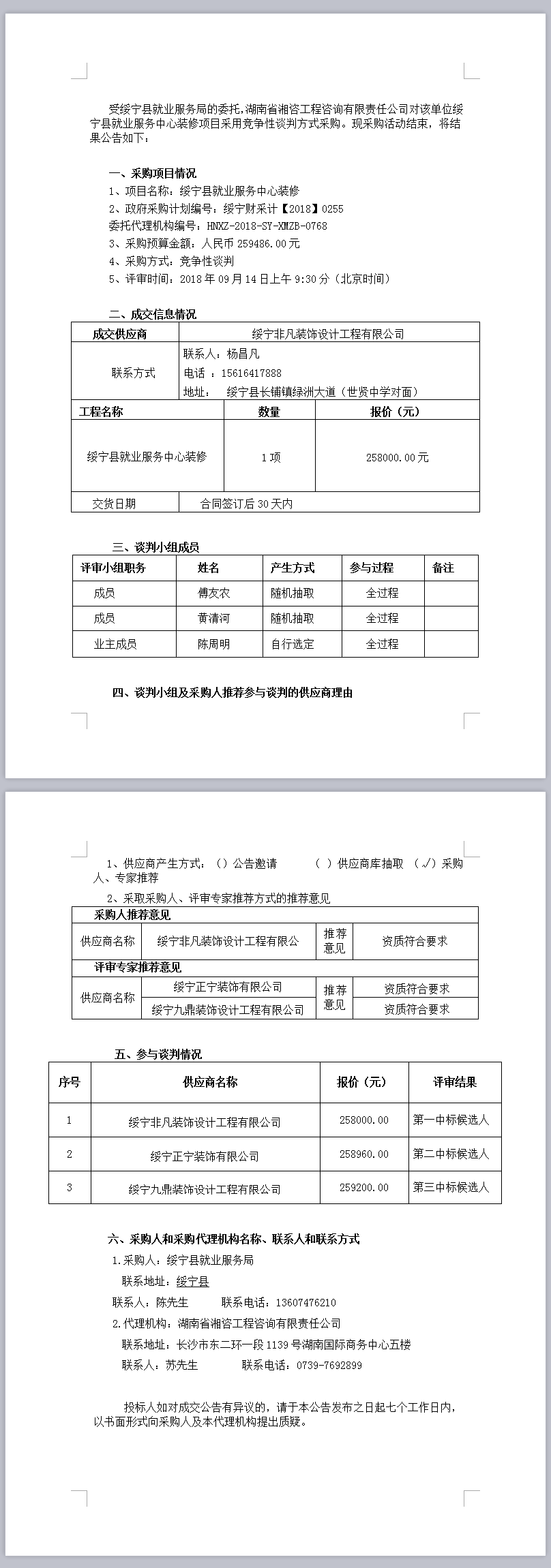 綏寧縣就業(yè)服務(wù)中心裝修談判成交公告