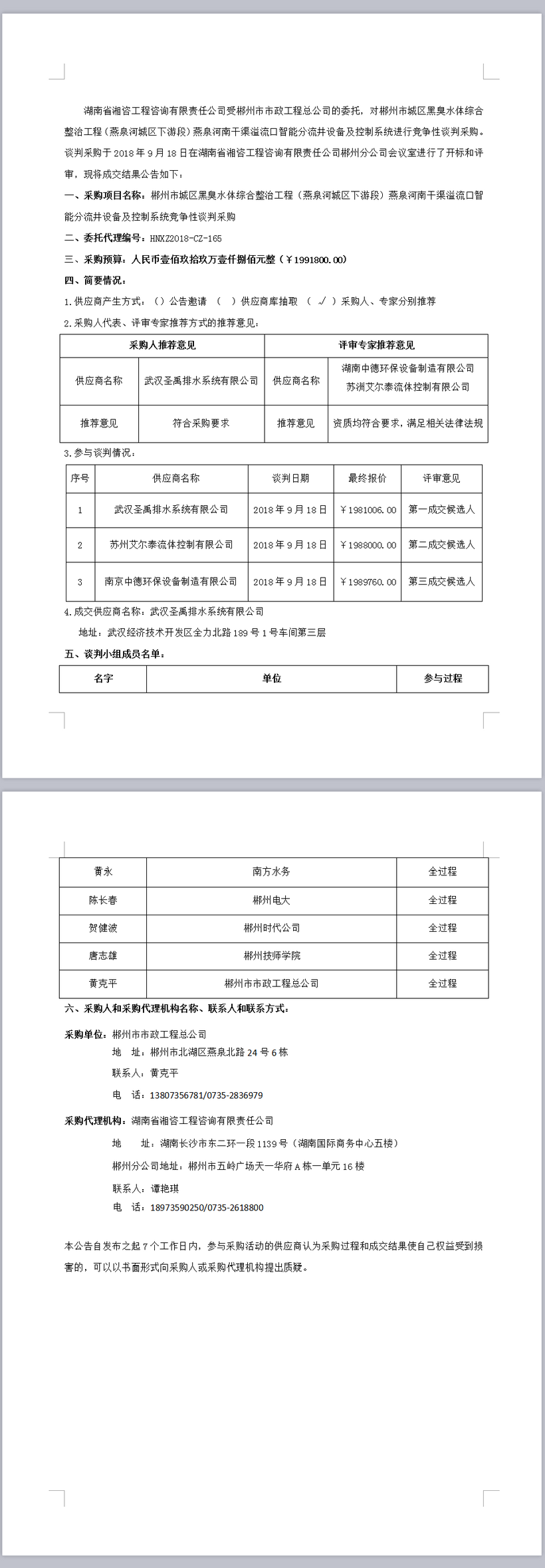 郴州市城區(qū)黑臭水體綜合整治工程(燕泉河城區(qū)下游段)燕泉河南干渠溢流口智能分流井設(shè)備及控制系統(tǒng)競(jìng)爭(zhēng)性談判采購(gòu)成交公告