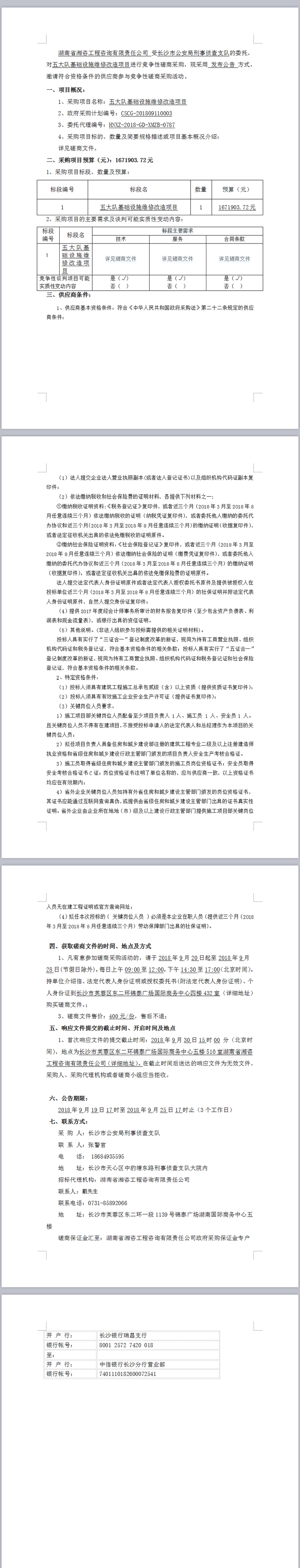 長(zhǎng)沙市公安局刑事偵查支隊(duì)五大隊(duì)基礎(chǔ)設(shè)施維修改造項(xiàng)目競(jìng)爭(zhēng)性磋商邀請(qǐng)公告