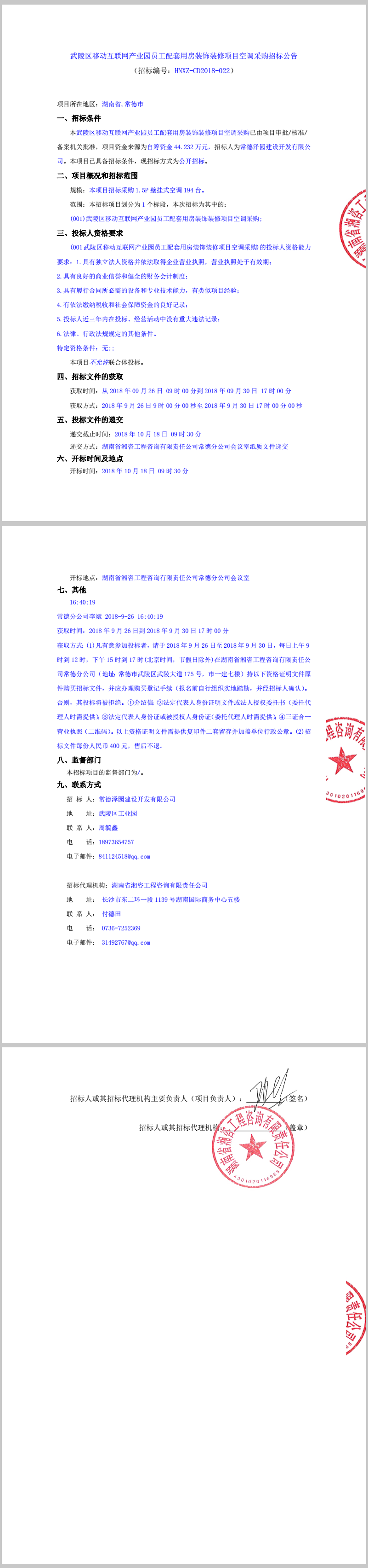 武陵區(qū)移動互聯(lián)網(wǎng)產(chǎn)業(yè)園員工配套用房裝飾裝修項目空調(diào)采購招標(biāo)公告