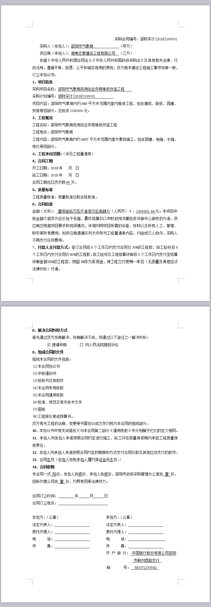 邵陽(yáng)市氣象局觀測(cè)站業(yè)務(wù)樓維修改造工程政府采購(gòu)合同公示
