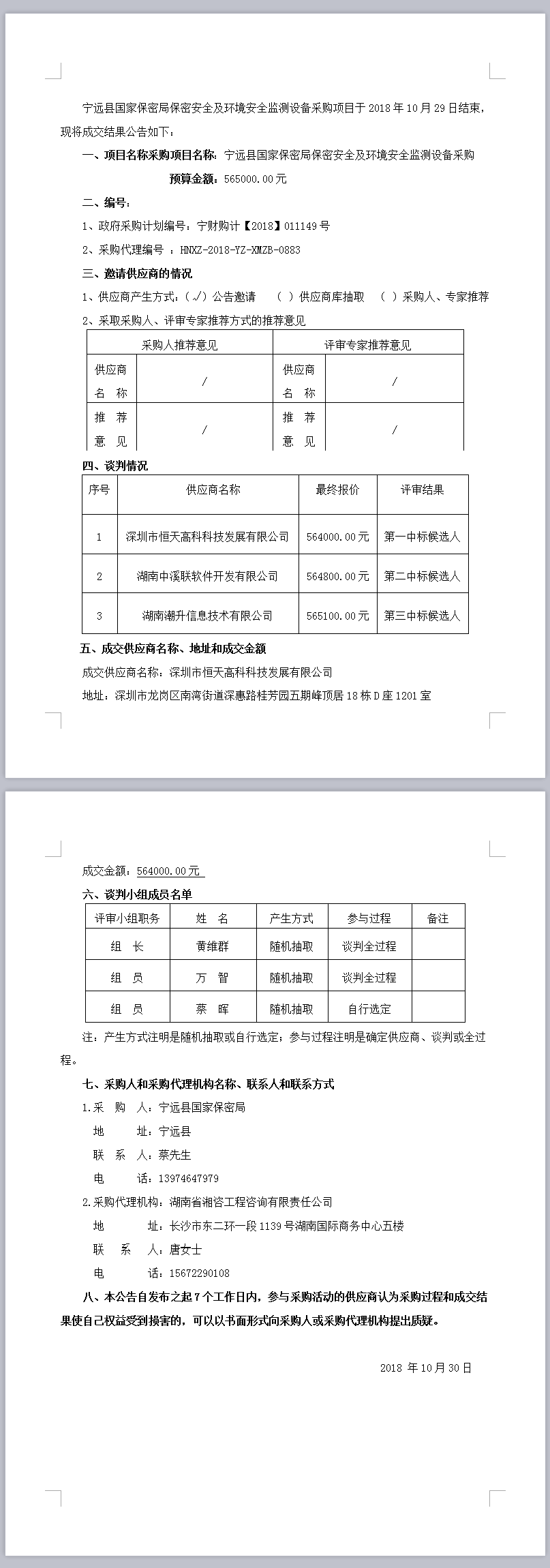寧遠(yuǎn)縣國家保密局保密安全及環(huán)境安全監(jiān)測設(shè)備采購項(xiàng)目 競爭性談判成交公告