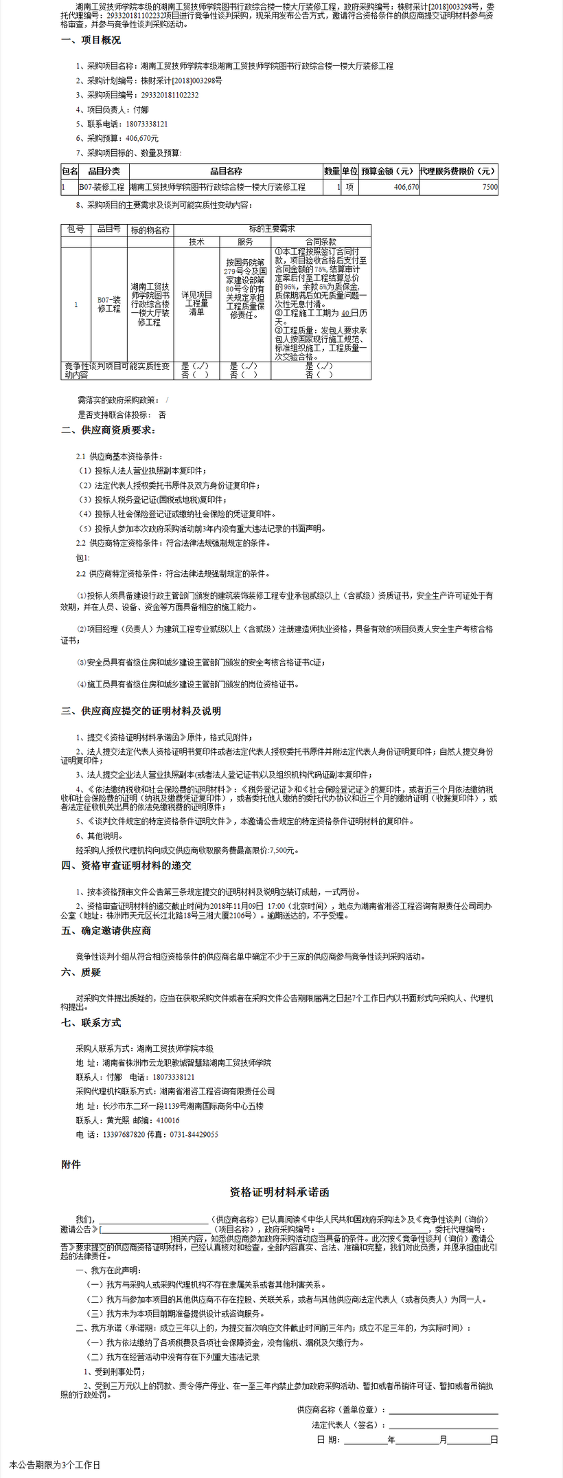 湖南工貿(mào)技師學(xué)院圖書行政綜合樓一樓大廳裝修工程競爭性談判邀請公告