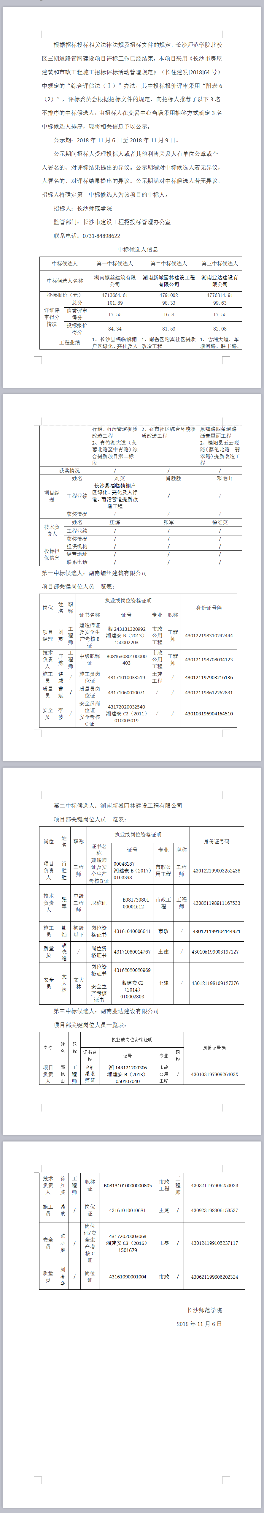 長(zhǎng)沙師范學(xué)院北校區(qū)三期道路管網(wǎng)建設(shè)項(xiàng)目中標(biāo)候選人公示