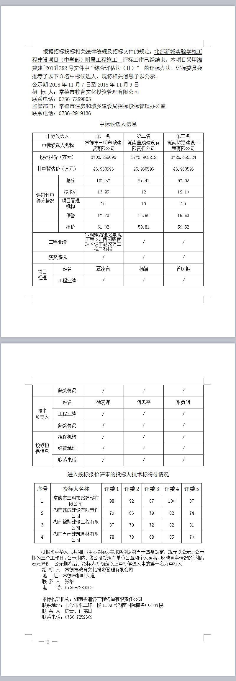 北部新城實驗學校工程建設項目(中學部)附屬工程施工中標候選人公示
