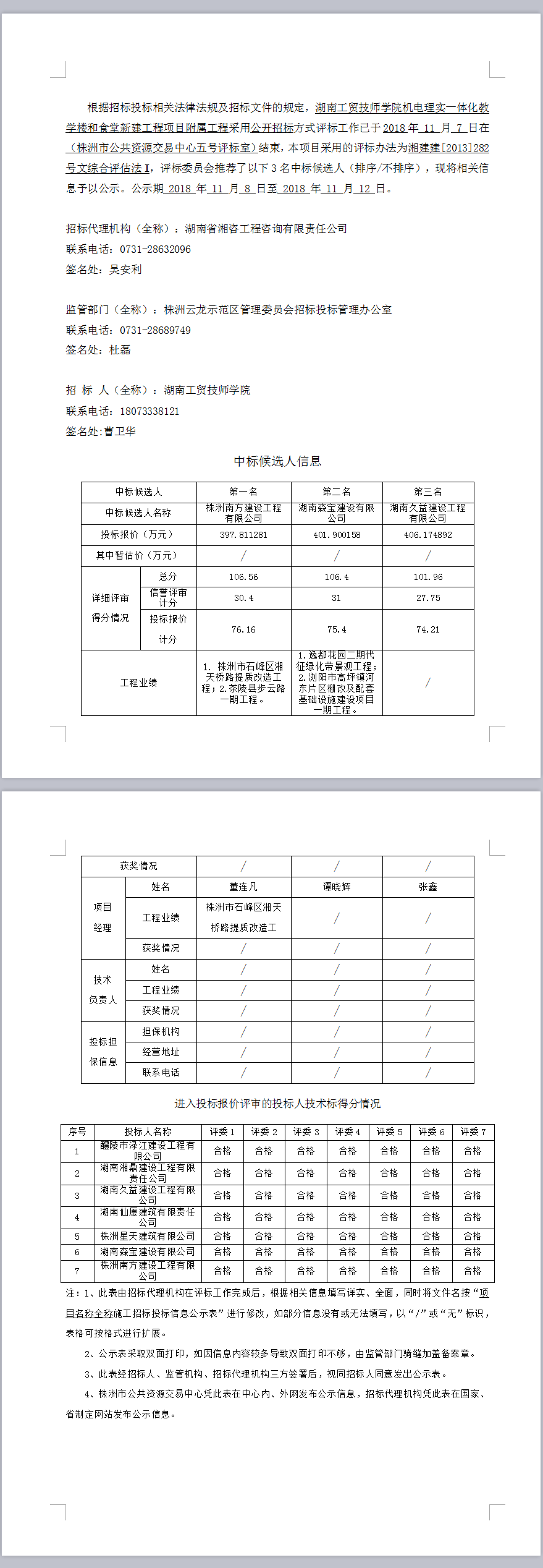 湖南工貿(mào)技師學(xué)院機(jī)電理實(shí)一體化教學(xué)樓和食堂新建工程項(xiàng)目附屬工程招標(biāo)投標(biāo)信息公示表