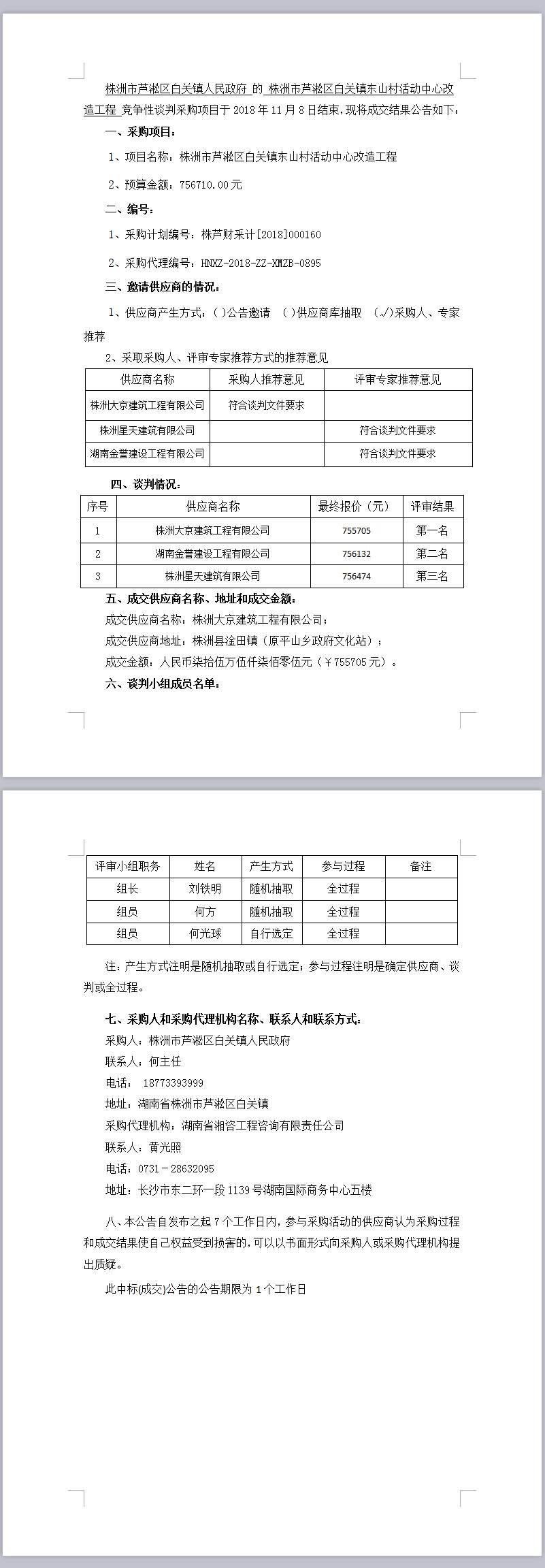 株洲市蘆淞區(qū)白關(guān)鎮(zhèn)東山村活動中心改造工程談判成交公告