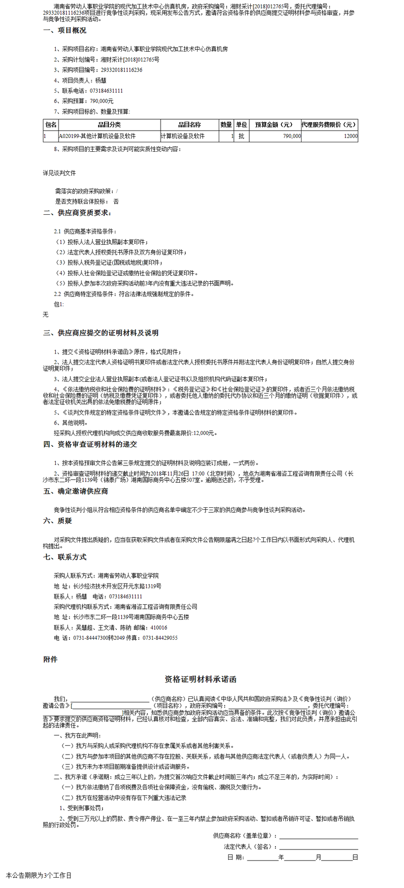 湖南省勞動人事職業(yè)學(xué)院現(xiàn)代加工技術(shù)中心仿真機(jī)房項目競爭性談判邀請公告