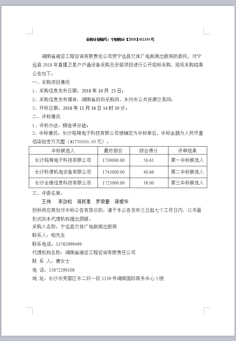 寧遠(yuǎn)縣2018年直播衛(wèi)星戶戶通設(shè)備采購(gòu)及安裝項(xiàng)目中標(biāo)公告