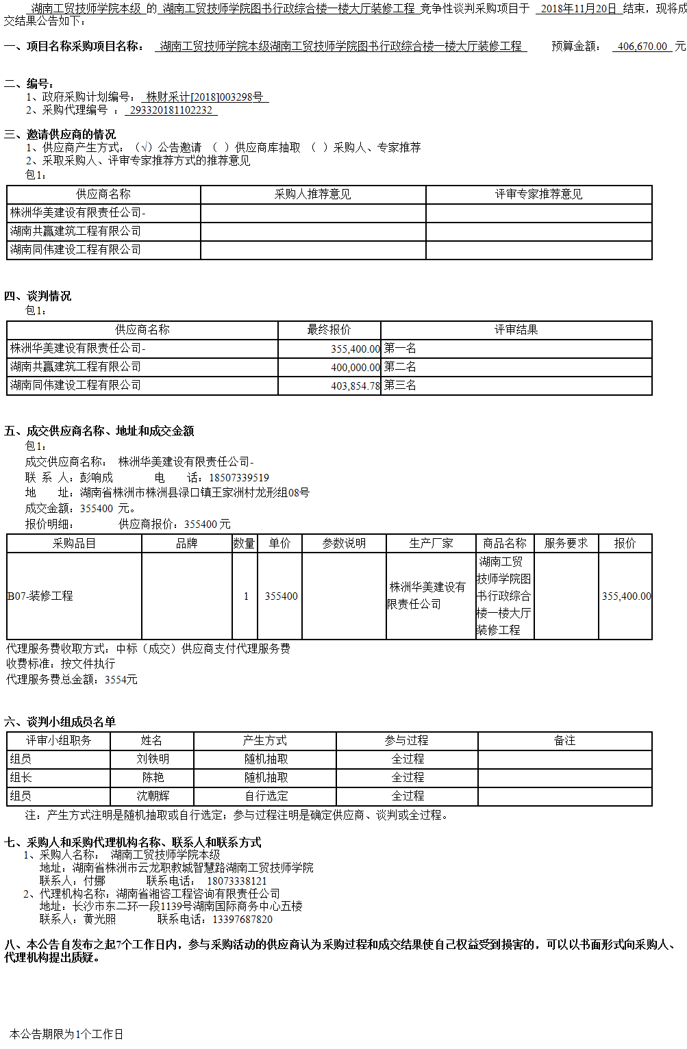 湖南工貿(mào)技師學院圖書行政綜合樓一樓大廳裝修工程成交結(jié)果公告