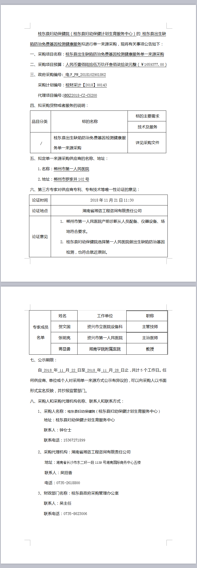 桂東縣出生缺陷防治免費基因檢測健康服務(wù) 單一來源采購公示