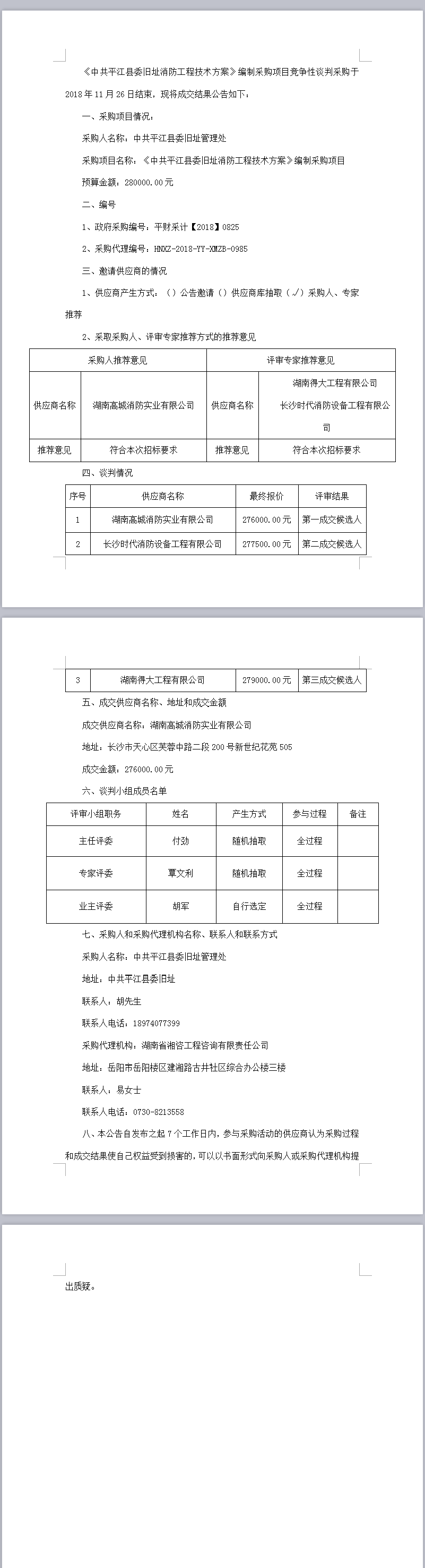 《中共平江縣委舊址消防工程技術(shù)方案》編制采購(gòu)項(xiàng)目競(jìng)爭(zhēng)性談判成交結(jié)果公告