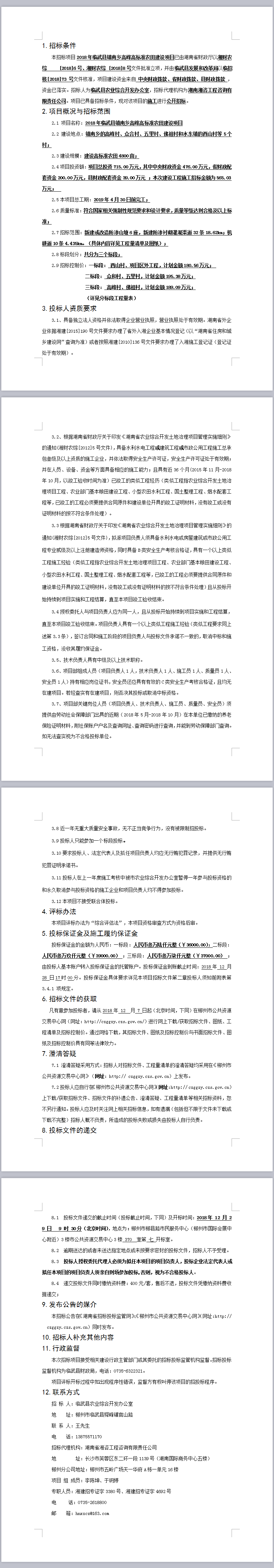 2018年臨武縣鎮(zhèn)南鄉(xiāng)高峰高標準農田建設項目招標公告