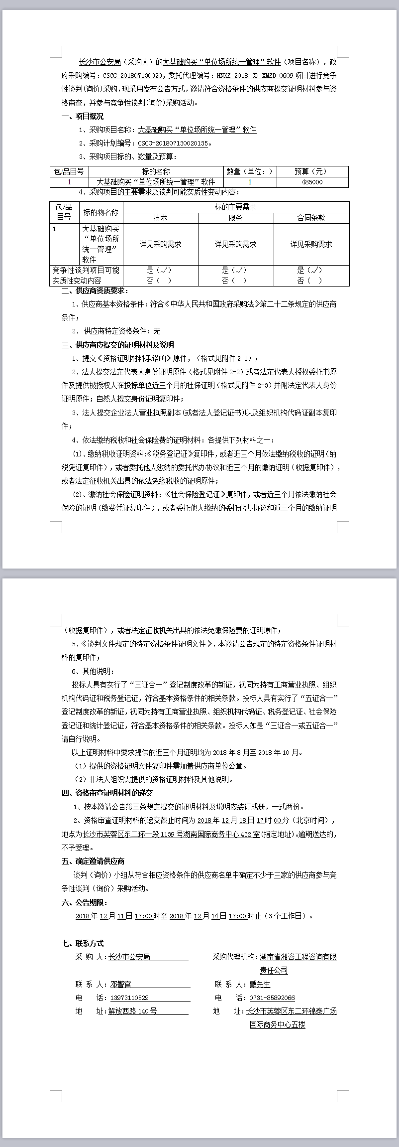 大基礎(chǔ)購(gòu)買“單位場(chǎng)所統(tǒng)一管理”軟件競(jìng)爭(zhēng)性談判邀請(qǐng)公告