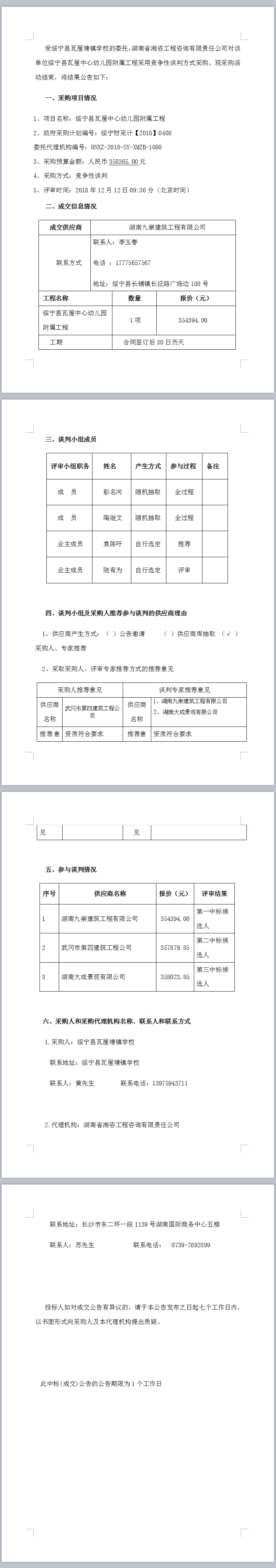 綏寧縣瓦屋中心幼兒園附屬工程談判成交公告