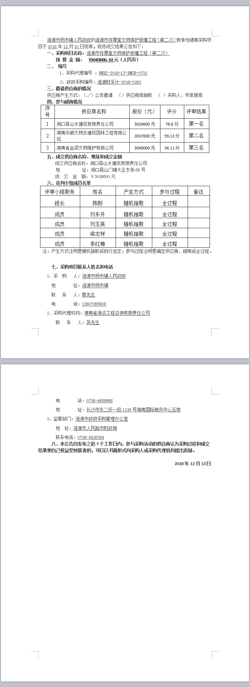 漣源市存厚堂文物保護修繕工程(第二次) 競爭性磋商成交結(jié)果公告