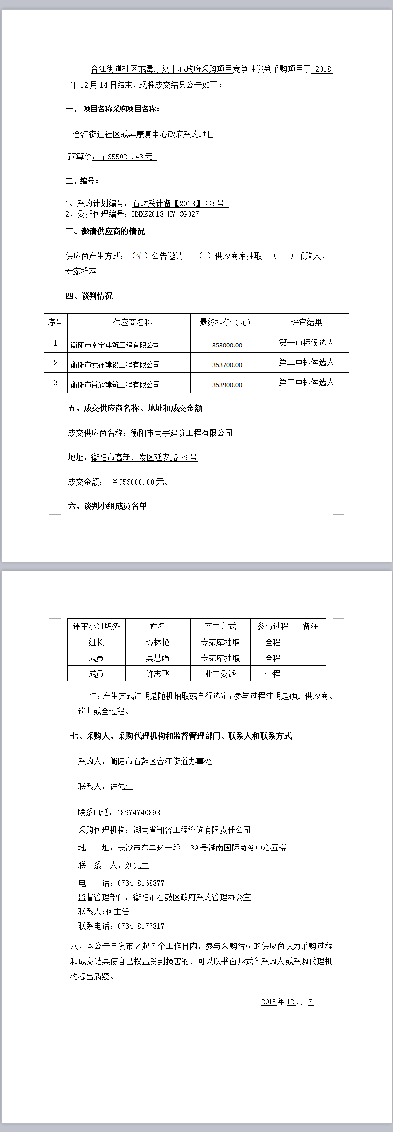 合江街道社區(qū)戒毒康復(fù)中心政府采購(gòu)項(xiàng)目成交公告