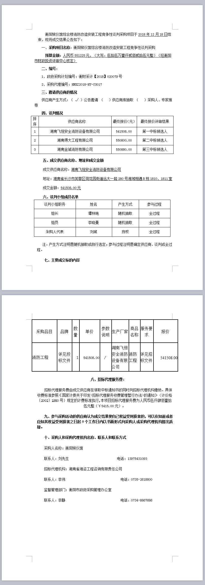 衡陽殯儀館綜合樓消防改造安裝工程競爭性談判采購成交公告