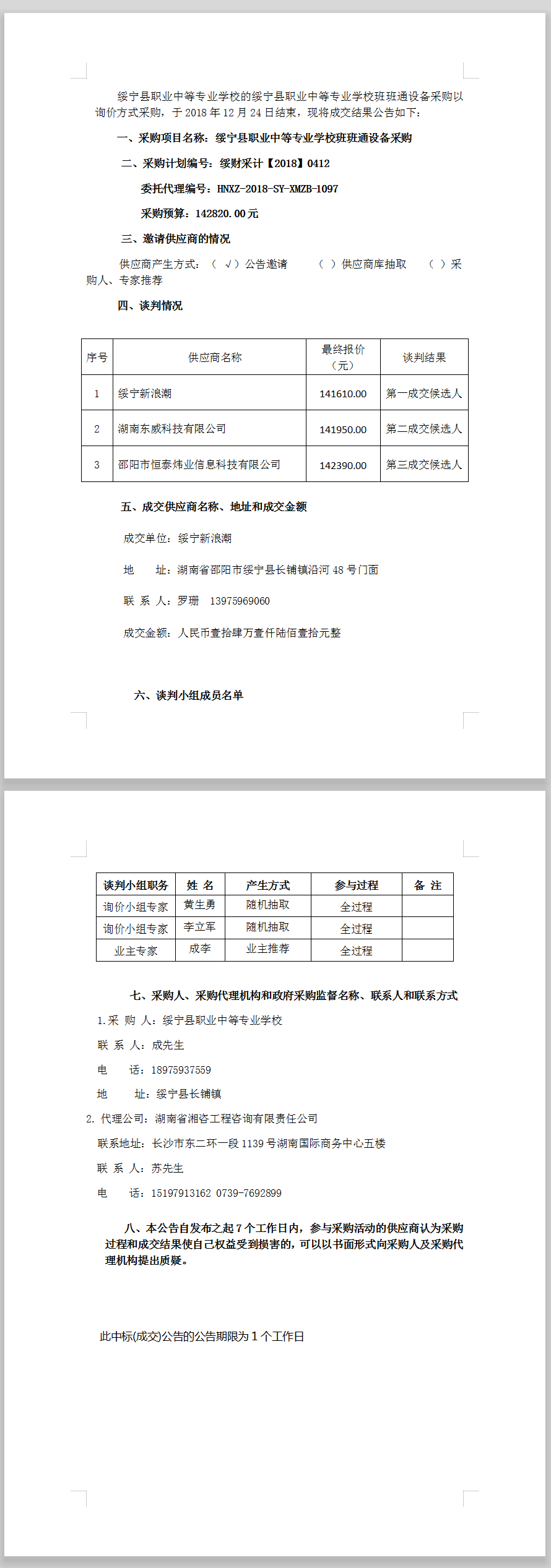 首頁->招標采購信息->中標公示
