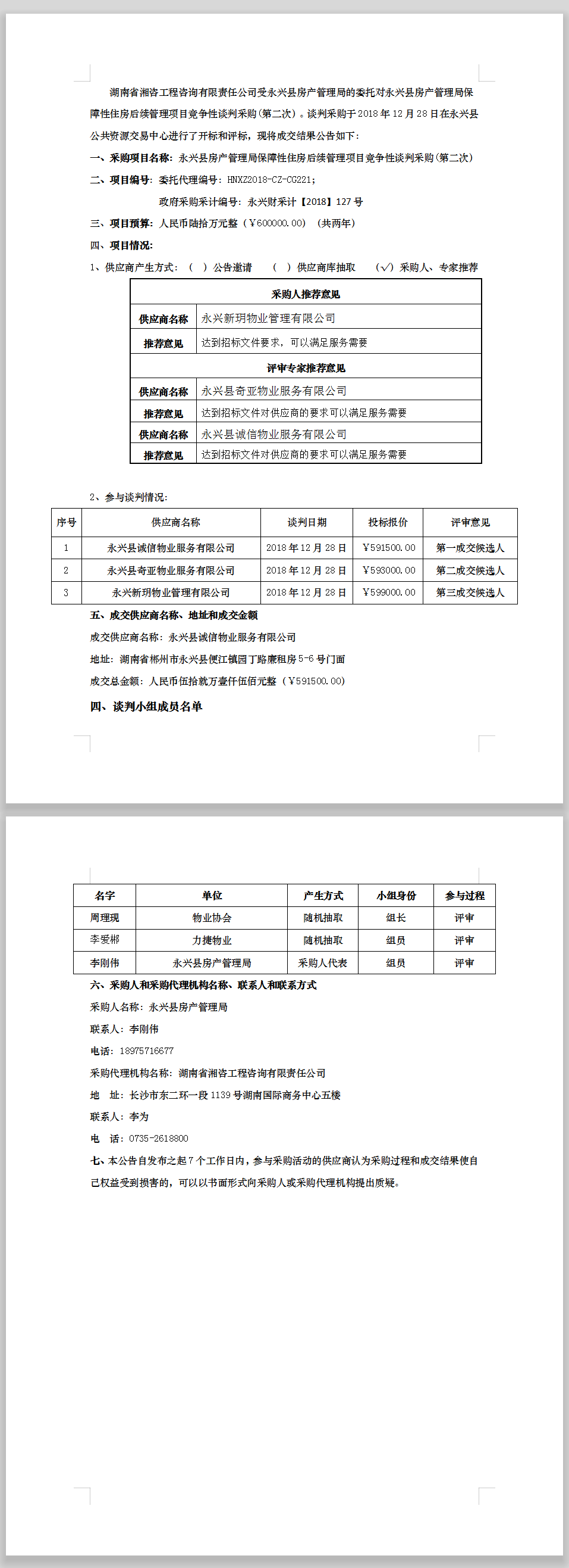 永興縣房產(chǎn)管理局保障性住房后續(xù)管理項(xiàng)目 競(jìng)爭(zhēng)性談判采購(gòu)(第二次)成交公告