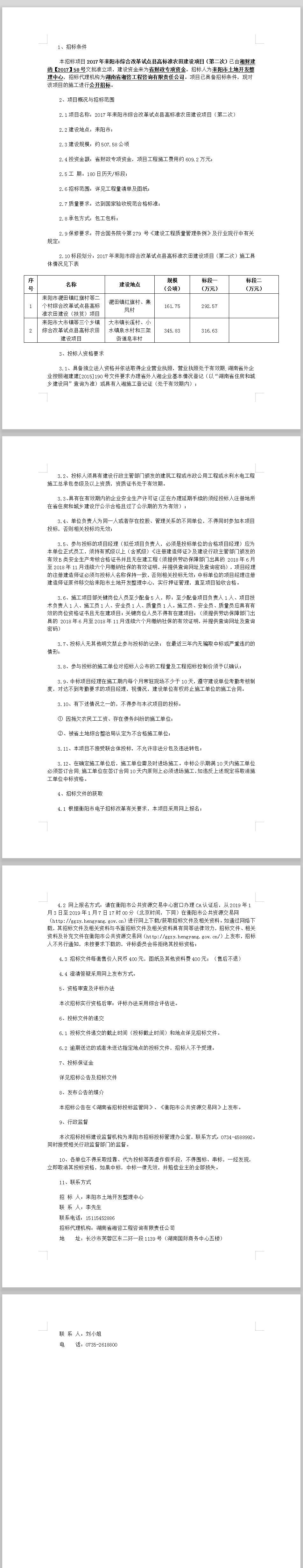 2017年耒陽市綜合改革試點縣高標(biāo)準(zhǔn)農(nóng)田建設(shè)項目(第二次)招標(biāo)公告