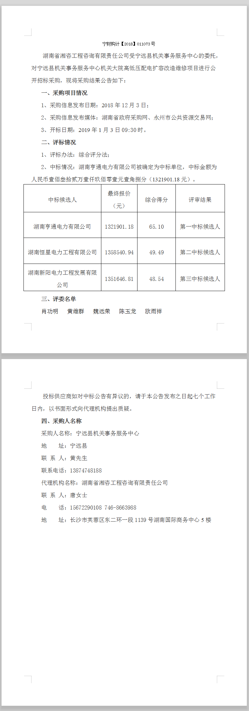 寧遠(yuǎn)縣機關(guān)事務(wù)服務(wù)中心機關(guān)大院高低壓配電擴容改造維修項目中標(biāo)公告