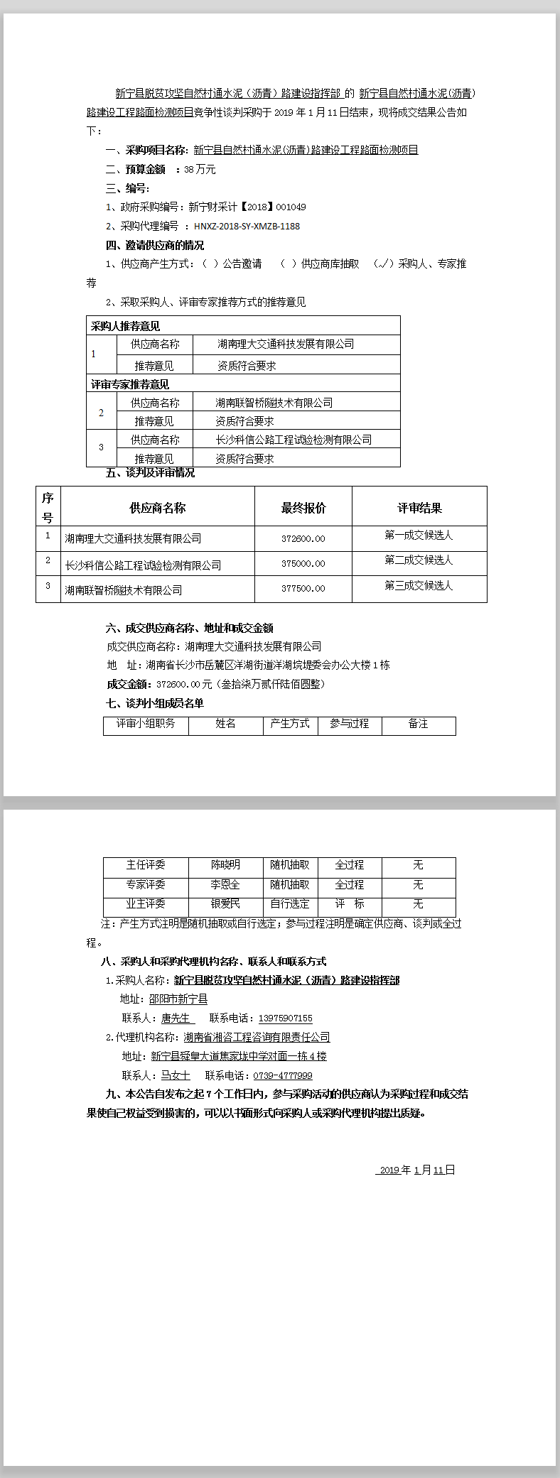 新寧縣自然村通水泥(瀝青)路建設(shè)工程路面檢測(cè)項(xiàng)目競(jìng)爭(zhēng)性談判成交結(jié)果公告