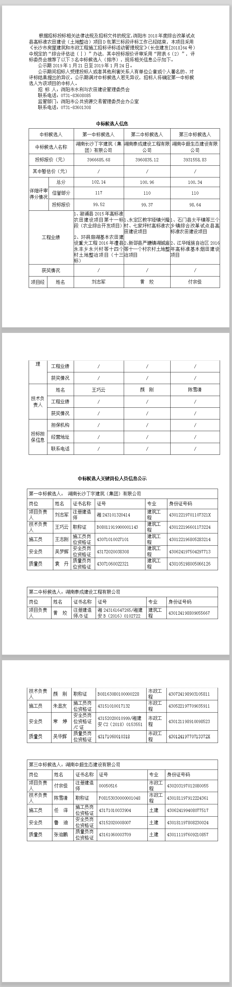 瀏陽市2018年度綜合改革試點(diǎn)縣高標(biāo)準(zhǔn)農(nóng)田建設(shè)(土地整治)項(xiàng)目D包第三標(biāo)段中標(biāo)候選人公示